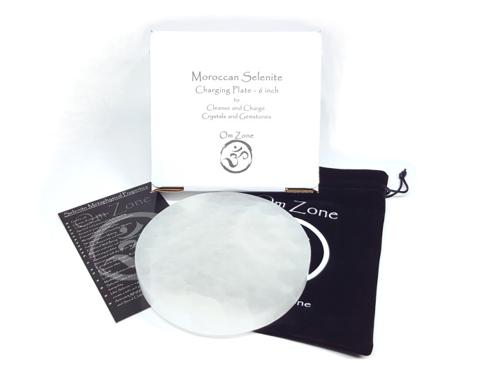 Authentic Moroccan Selenite manufactured to our demading specifications. Perfect for charging and cleansing your collection of crystals and healing stones. Approx 6" dia. x 0.8"
