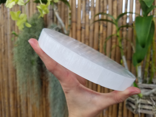 Authentic Moroccan Selenite manufactured to our demading specifications. Perfect for charging and cleansing your collection of crystals and healing stones. Approx 6" dia. x 0.8"